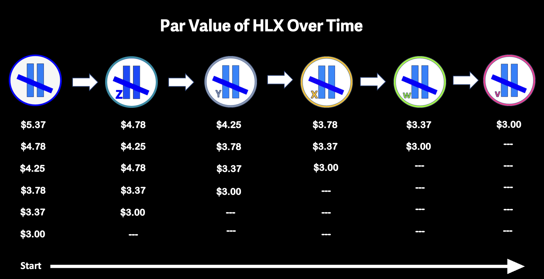 The HLX block par value adjustment occurs again when yHLX is released, and will continue with each series there after as liquidity thresholds are met across the network.