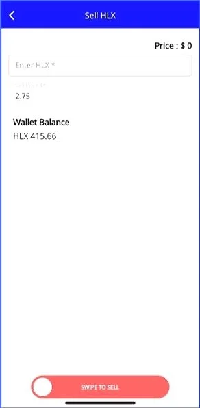 To swap HLX, simply select “Sell HLX” from the Buy/Sell Menu Button and then input the number of HLX coins to exchange.